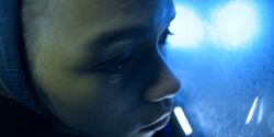 She left following a family meeting, saying that she needed to relax. John found her on one of the ship's treadmills and asked about it and she told him there was a difference between rest and relaxation. He told her that he knew what the fear she had experienced could do to her body and mind, but she insisted she was fine and resumed running on the treadmill. After he left, however, she displayed signs of nervous tension. When he was exploring in the ship's tunnels later, she asked if it was safe and he said it was the first time he had ever heard her ask that question. She shot back that he had not been around to hear much of anything. He told her it was okay if she didn't want to be there with him, but she said that four hands were better than two. They were interrupted and back up above, she looked at the iced-up window and experienced a flashback to her panicked reaction when she was trapped underneath. She drew a smiley face on the window and, as she walked away, something could be seen slithering outside. She later offered to help her father as he faced the fuel eel crisis, but he told her to sit it out. She said that she could handle it and he told he believed her, but he wanted her to believe it too. As the vessel was tossed about in the icy waters, she became trapped under rubble and hyperventilated, unable to reach a communication device to call for help. She summoned her strength and reached a tool to free herself, still panting heavily but okay. She rejoined her family on the bridge, where they discovered that despite having apparently solved the problem, they still couldn't launch. She came to realization and urged her family to dump the vessel's fuel, explaining that if the fuel eels were still in the tank, they could be clogging the intake valve, preventing whatever fuel was down there from getting into the combustion chamber. If they could just clear it, there would still be enough fuel in the lines to get out. At John's urging, she implemented the plan and they successfully escaped, touching down on green, verdant land. She smiled in excitement with the rest of the Robinsons as the ship's comm systems reactivated and they received a transmission from a Mark of the Jupiter 22. She shared hugs with her family as they listened to a transmission from the Resolute stating that the ship was okay. Afterwards, she ran on the treadmill again and John joined her on the neighboring treadmill. ("Infestation")